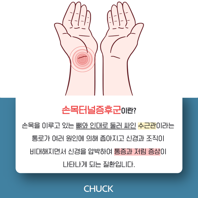 실생활에서 논스톱으로 사용합니다. 따라서 관련 질병의 위험이 더 높다고 할 수 있습니다. 대표적으로 대전손목터널증후군입니다. 수근관 증후군이라고도 하는 손목 터널 증후군은 손목 앞쪽의 피부 조직 아래에 손목을 구성하는 뼈와 인대로 형성된 작은 터널입니다. 신경과 9개의 힘줄이 통과합니다. 이 통로를 수근관이라고 하는데 어떤 이유로 좁아지거나 내압이 너무 높아지면 이 통로를 통과하는 신경이 손상되어 손바닥이나 손가락 등의 이상 증상을 일으킬 수 있다. 이 신경을 정중신경이라고 합니다. 즉, 힘줄과 신경이 손을 통과하는 통로인 수근관이 좁아지거나 내부 압력이 증가하여 신경을 압박하여 통증을 유발합니다. 대전손목터널증후군은 평생 50% 이상의 확률로 나타날 정도로 매우 흔한 질환 중 하나입니다.