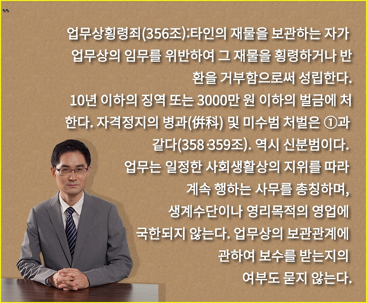 또한 본죄의 경우에는 타인의 재물을 보관하는 자가 이를 올바르게 반환하지 않은 경우 횡령죄 성립요건이 성립합니다.