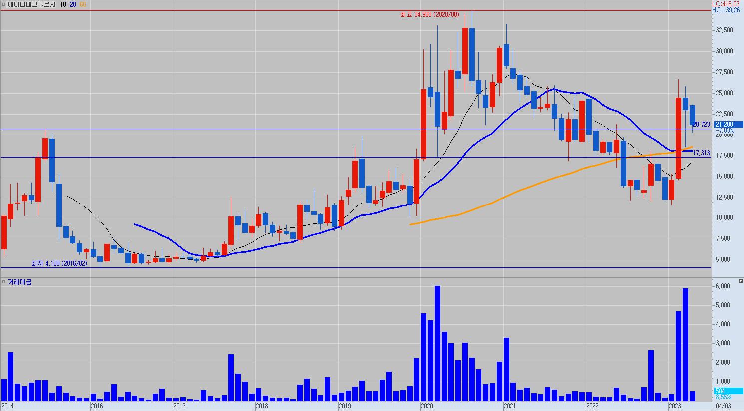 이후 2021년 5월 종가 20선을 돌파하며 20선을 돌파하지 못한 채 하락세를 이어갔다.